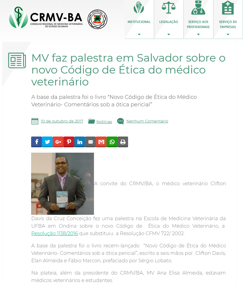 Para ver a matéria completa, clique aqui. CRMV-BA, 10 de outubro 2017